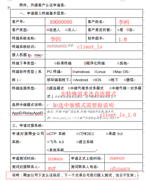 說明:仿真測試開戶信息需與正式接入的客戶信息一致